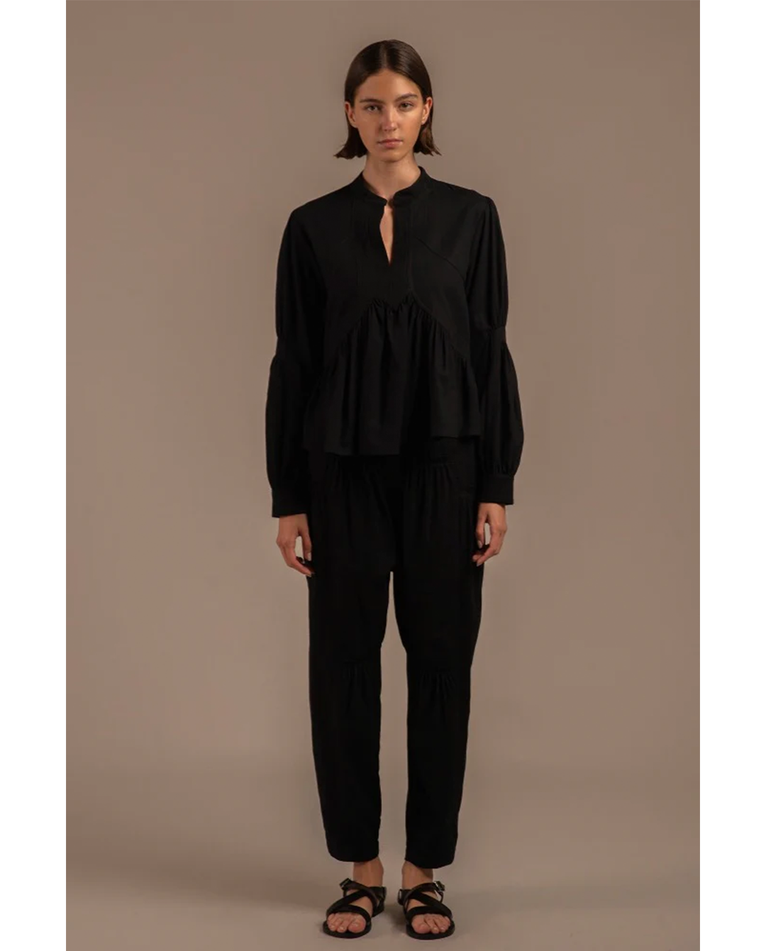 Pantalón icónico de Yakampot con plisados. Pantalón de algodón con plisados al frente y atrás. De cintura baja, cierra por la parte trasera con cierre invisible. El teñido de esta prenda es realizado de manera artesanal por lo que pueden presentarse variaciones de color.