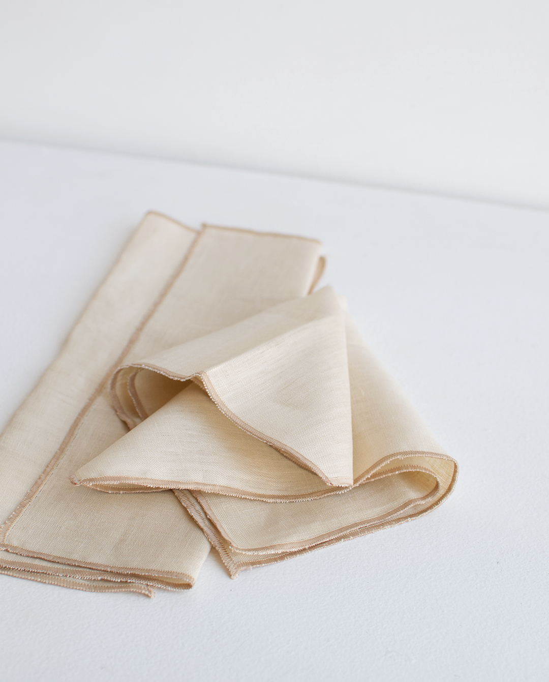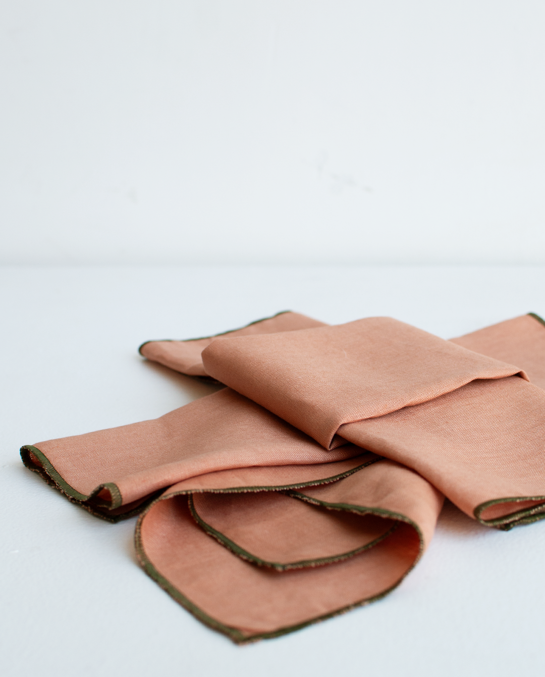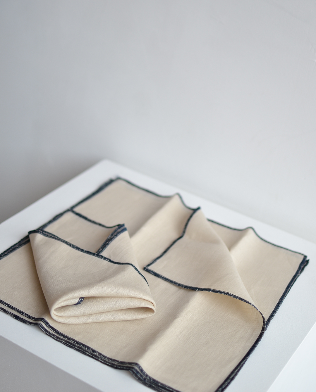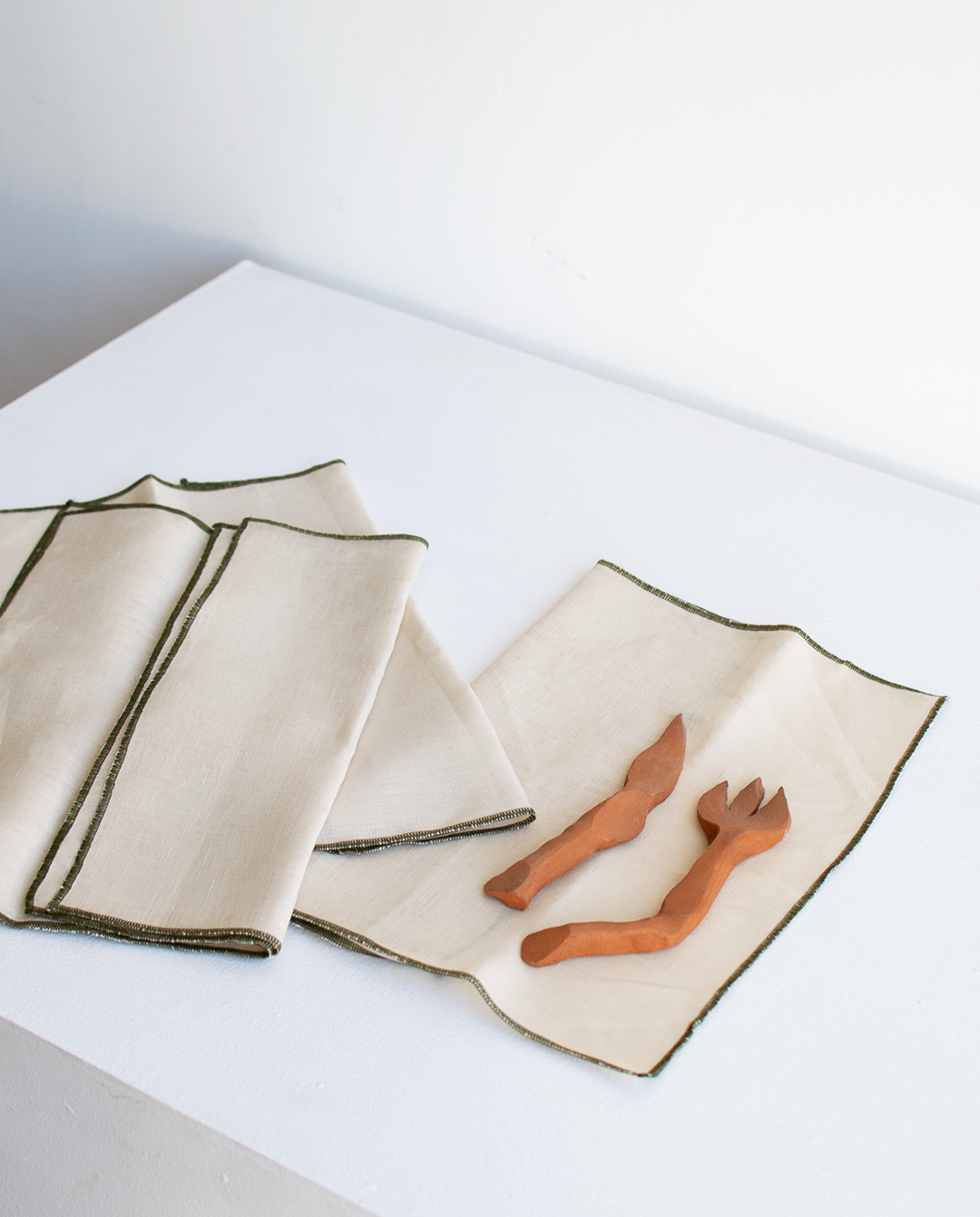 Los portavasos de Cardo Santo están hechos completamente de lino recuperado de la producción de sus batas, brindando nueva vida al residuo textil generado con la creación de nuevas piezas.