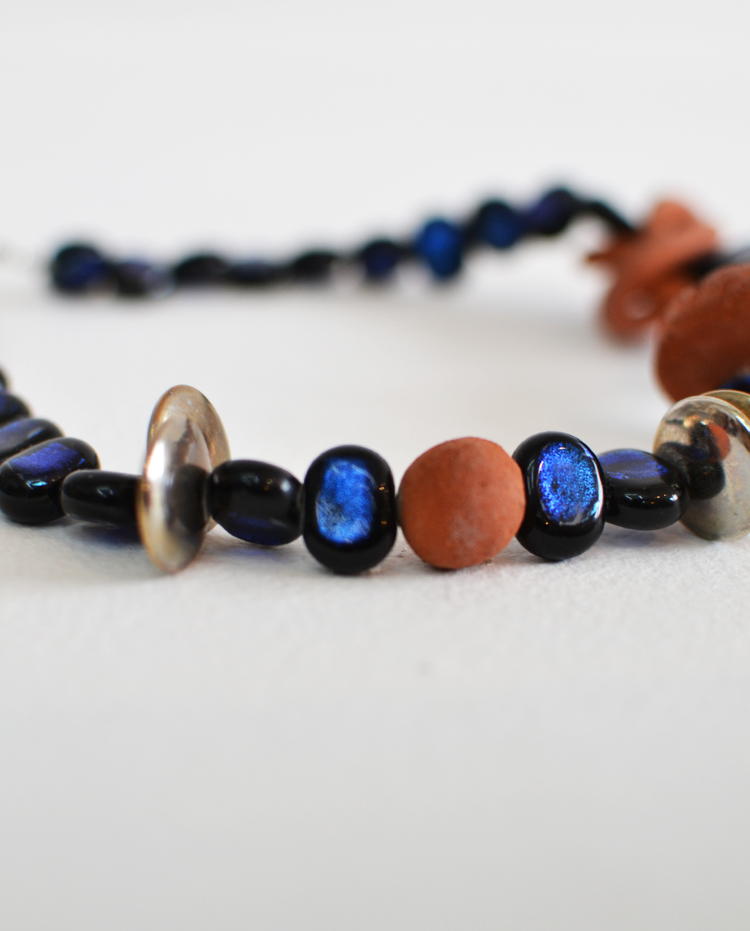 Piezas hechas con barro de Huasca de Ocampo. Quemadas en horno tradicional de ladrillo. Vidrio de Hidalgo y acero inoxidable.