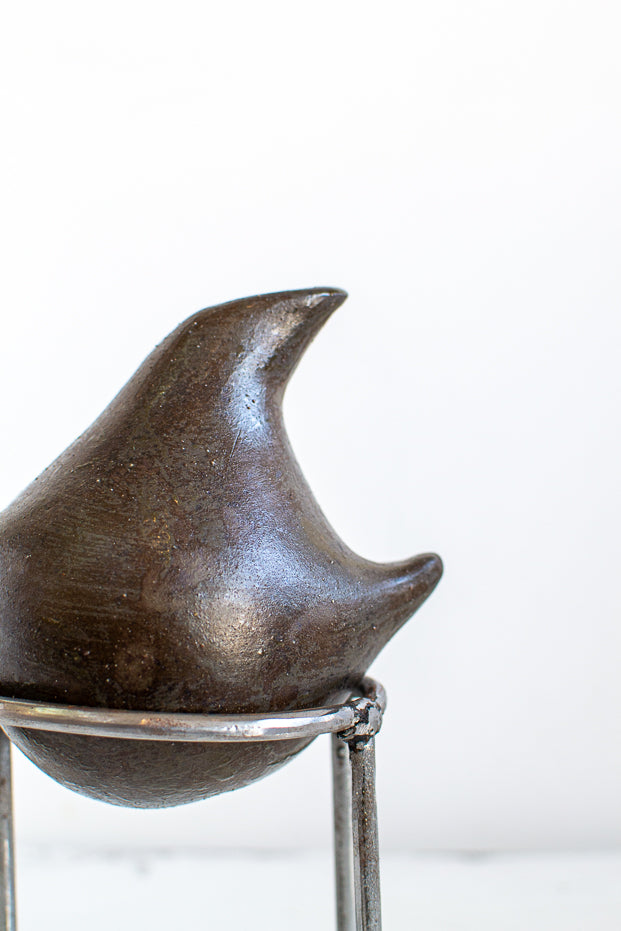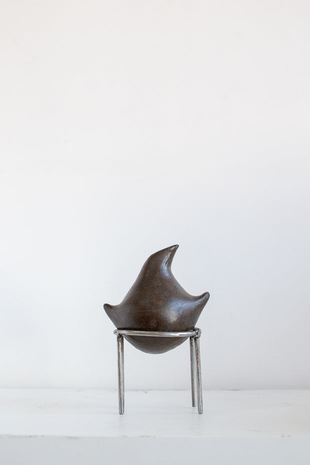 Cerámica de alta temperatura con esmaltes de ceniza de mezquite y arcillas del monte en base de acero.