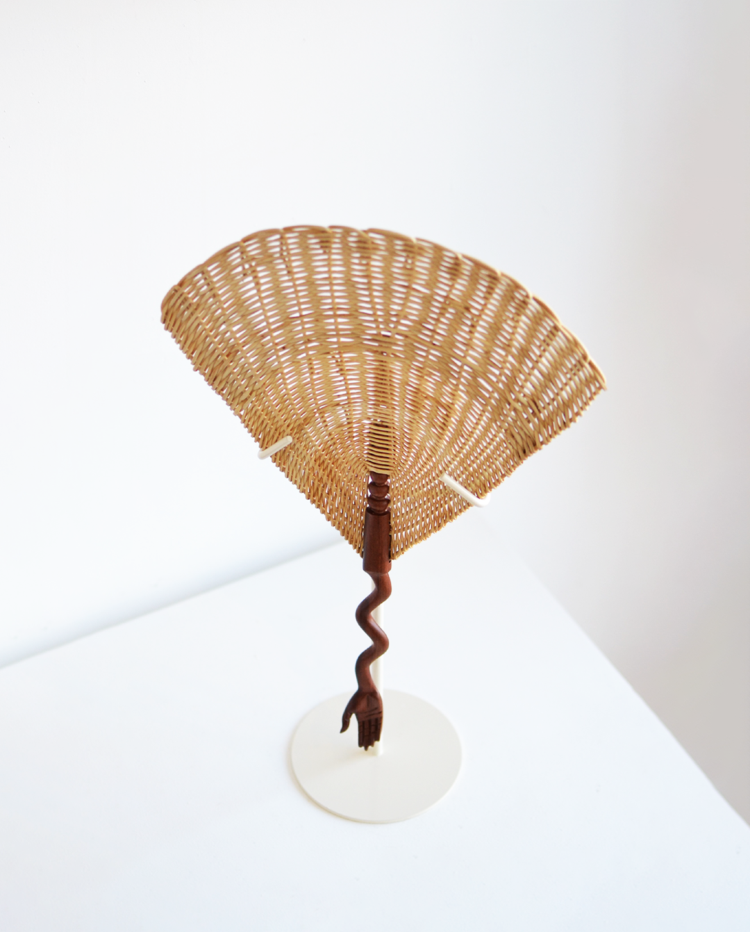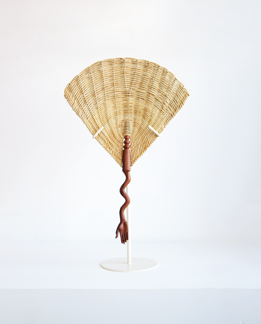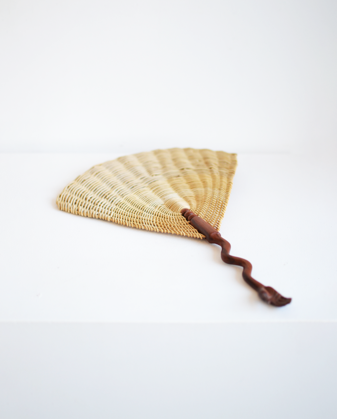 Estos abanicos fueron diseñados por Lordag & Sondag, tallados en madera de pimienta por Julián Martínez Hernández en Tecoluta, Nacajuca, Tabasco y posteriormente tejidos a mano por Don Claudio en la Sierra Madre Oriental del estado de Oaxaca.