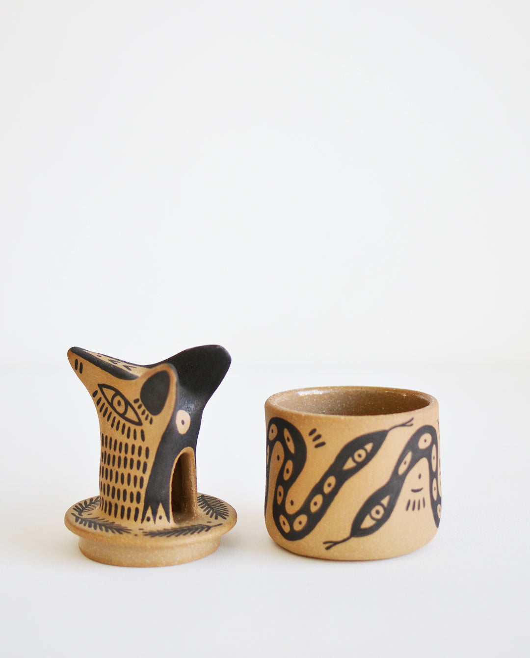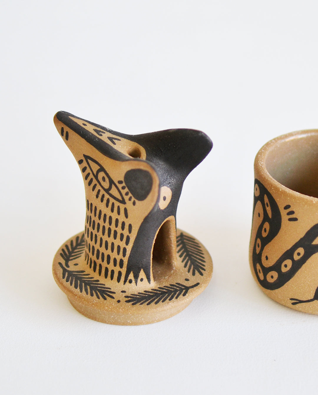 mientras las figurillas de animales nos transportan a un mundo mítico