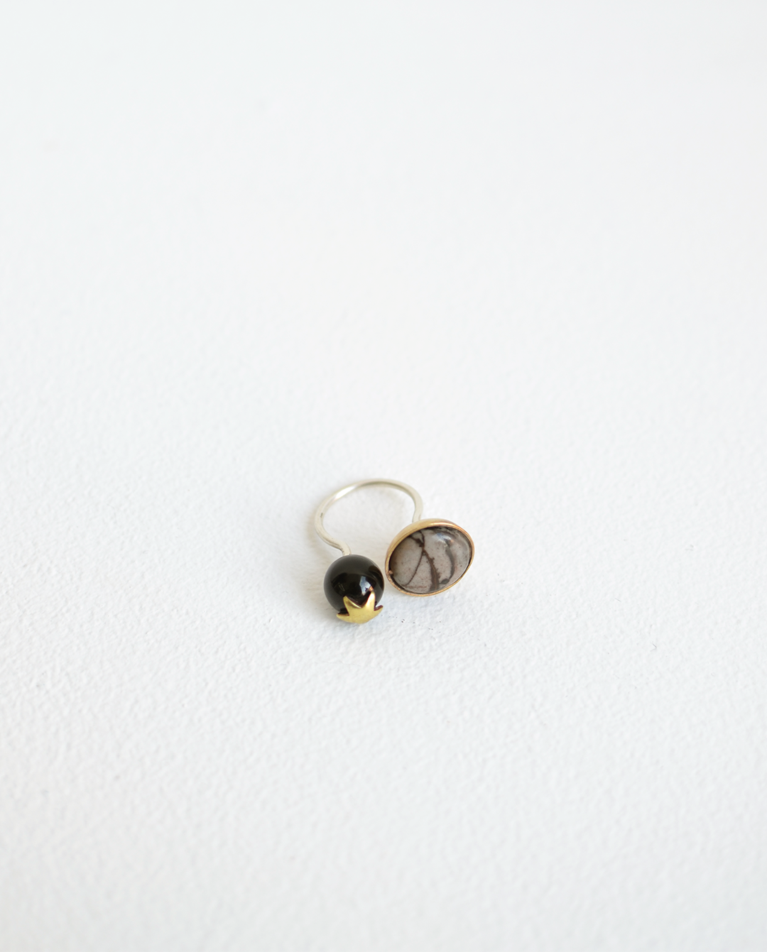 Spica Anillo Abierto Doble Onix/ Piedra de seda negra