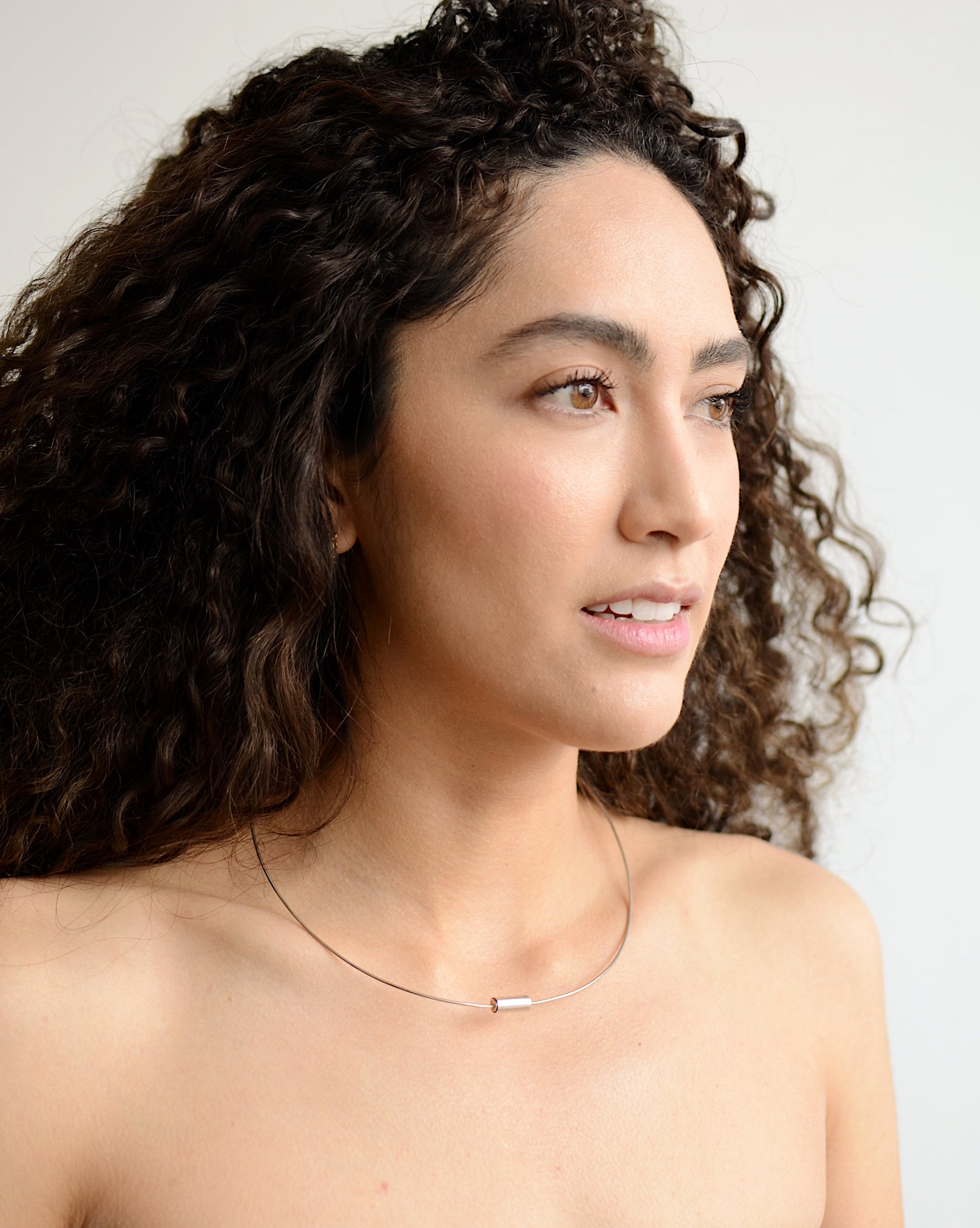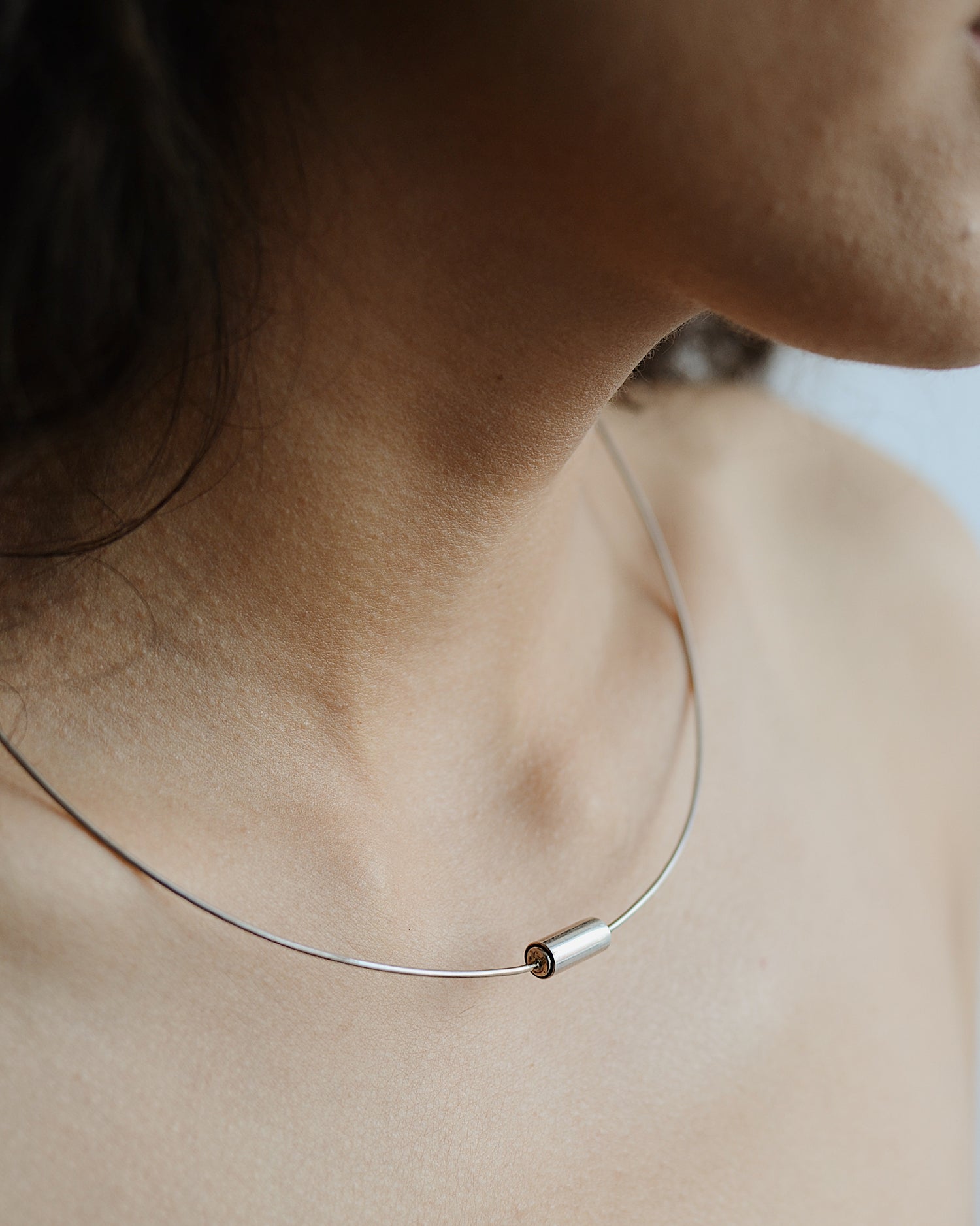 Gargantilla de alambre con cierre de imán, se puede abrir permitiendo personalizarlo con piedras, y dijes, entre otros.