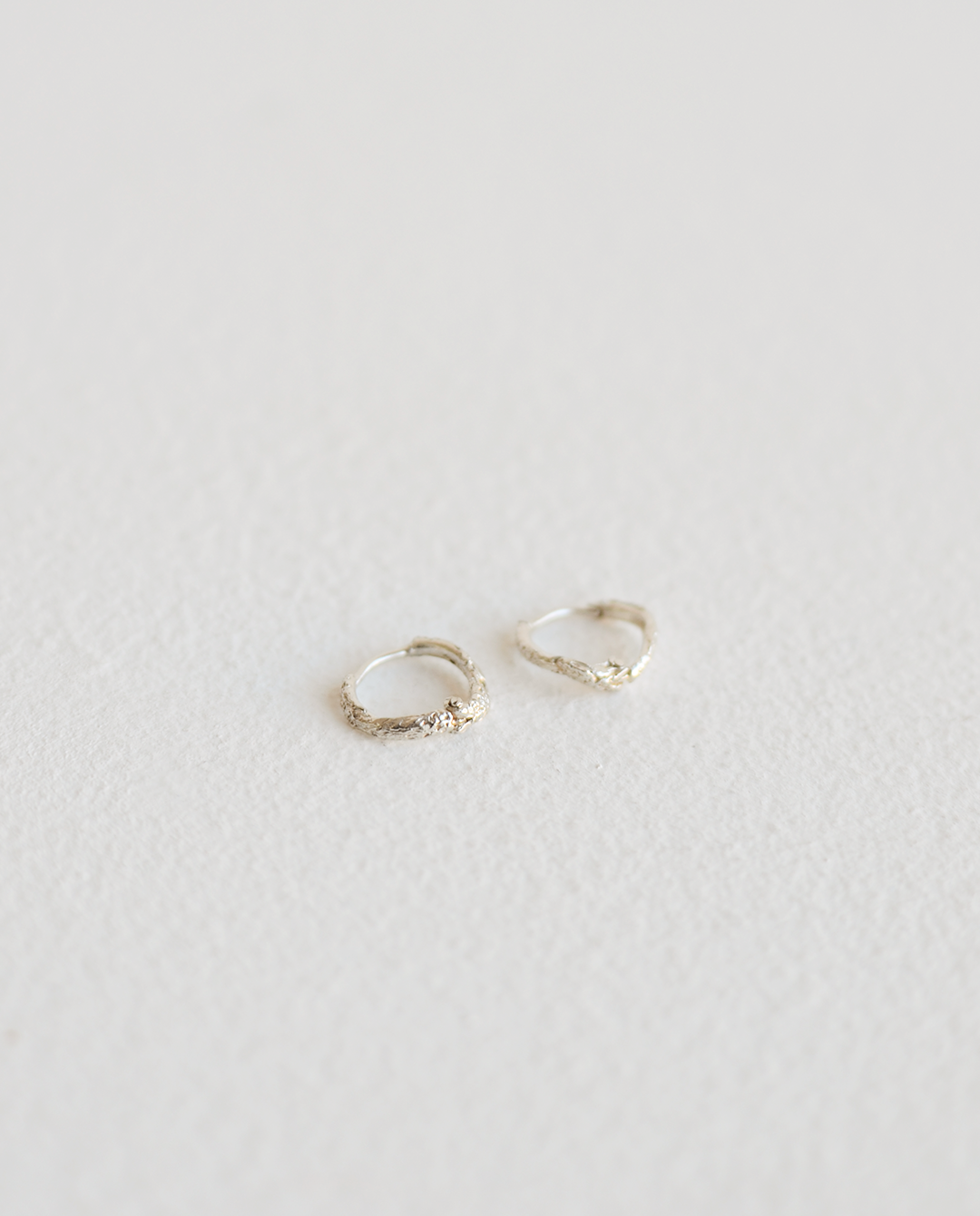 Esta pieza es una exploración de texturas, que nace a partir de los troncos de los árboles, puede combinarse con otras arracadas mas lisas.